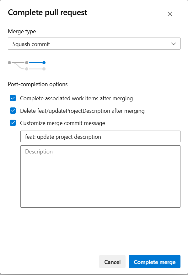 Manually change the commit message when merging a PR in Azure DevOps